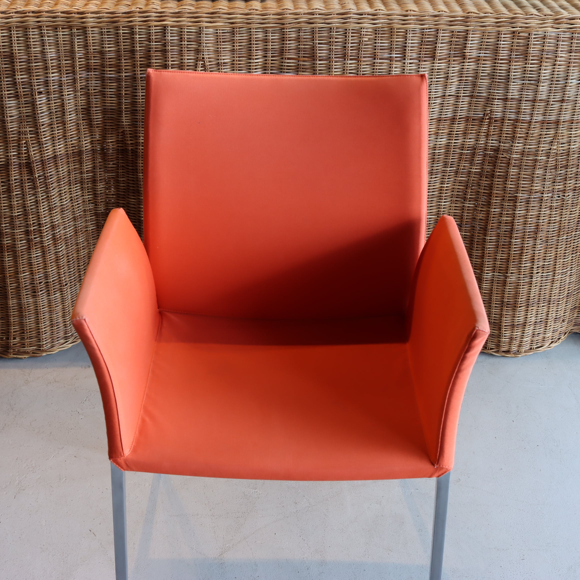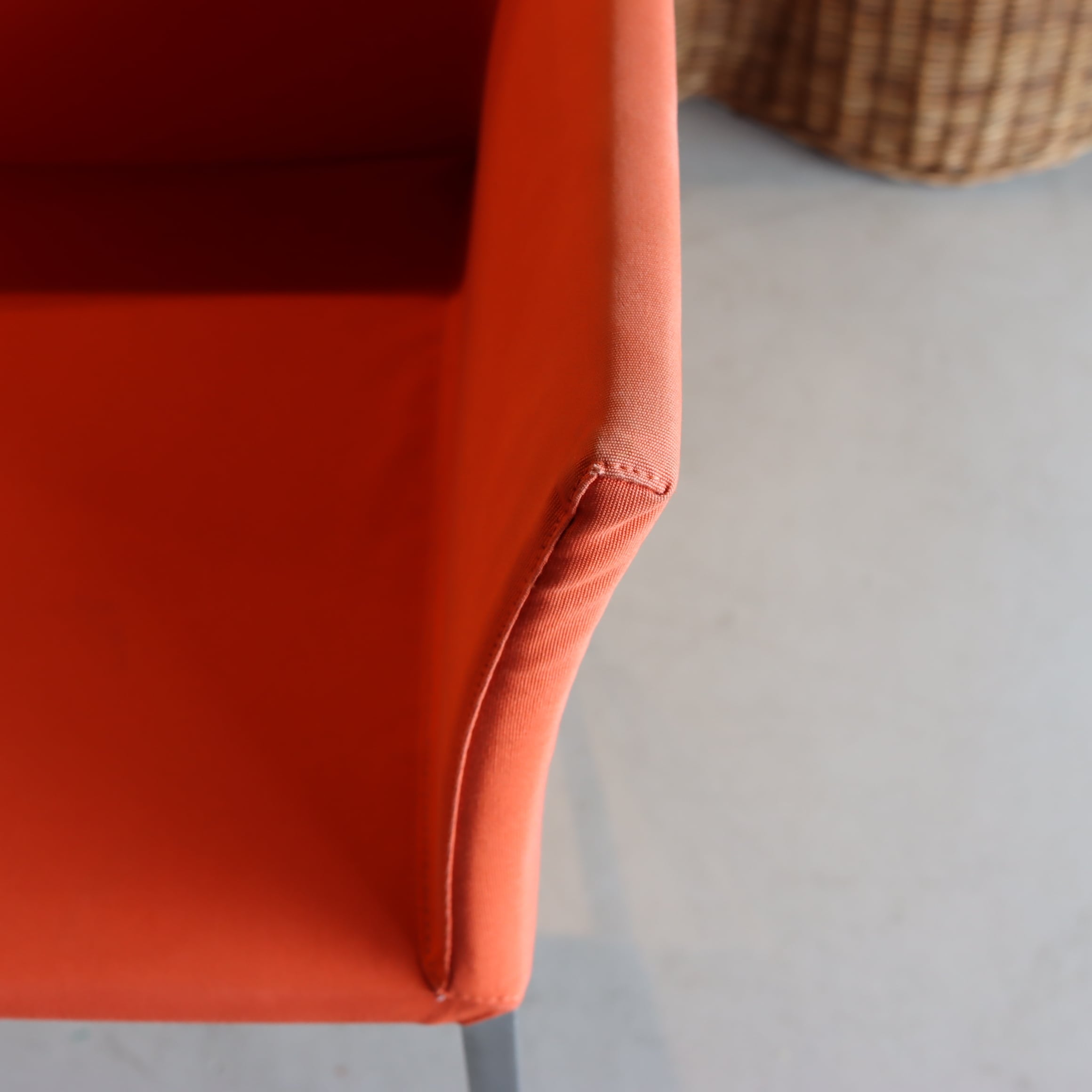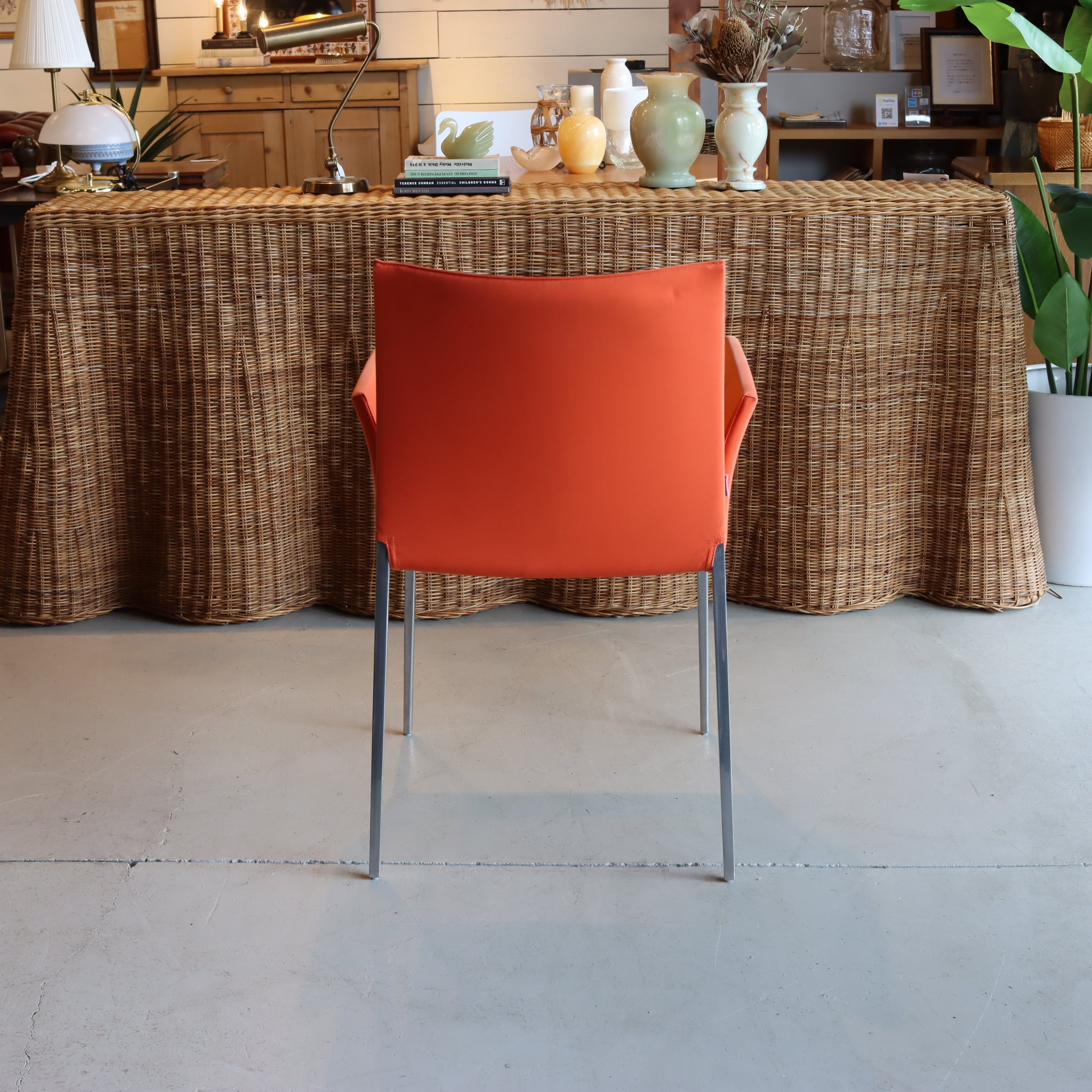 アルミ製のスリムな脚部に緩やかに外側に向けて湾曲したアームが大変スタイリッシュなチェアです。