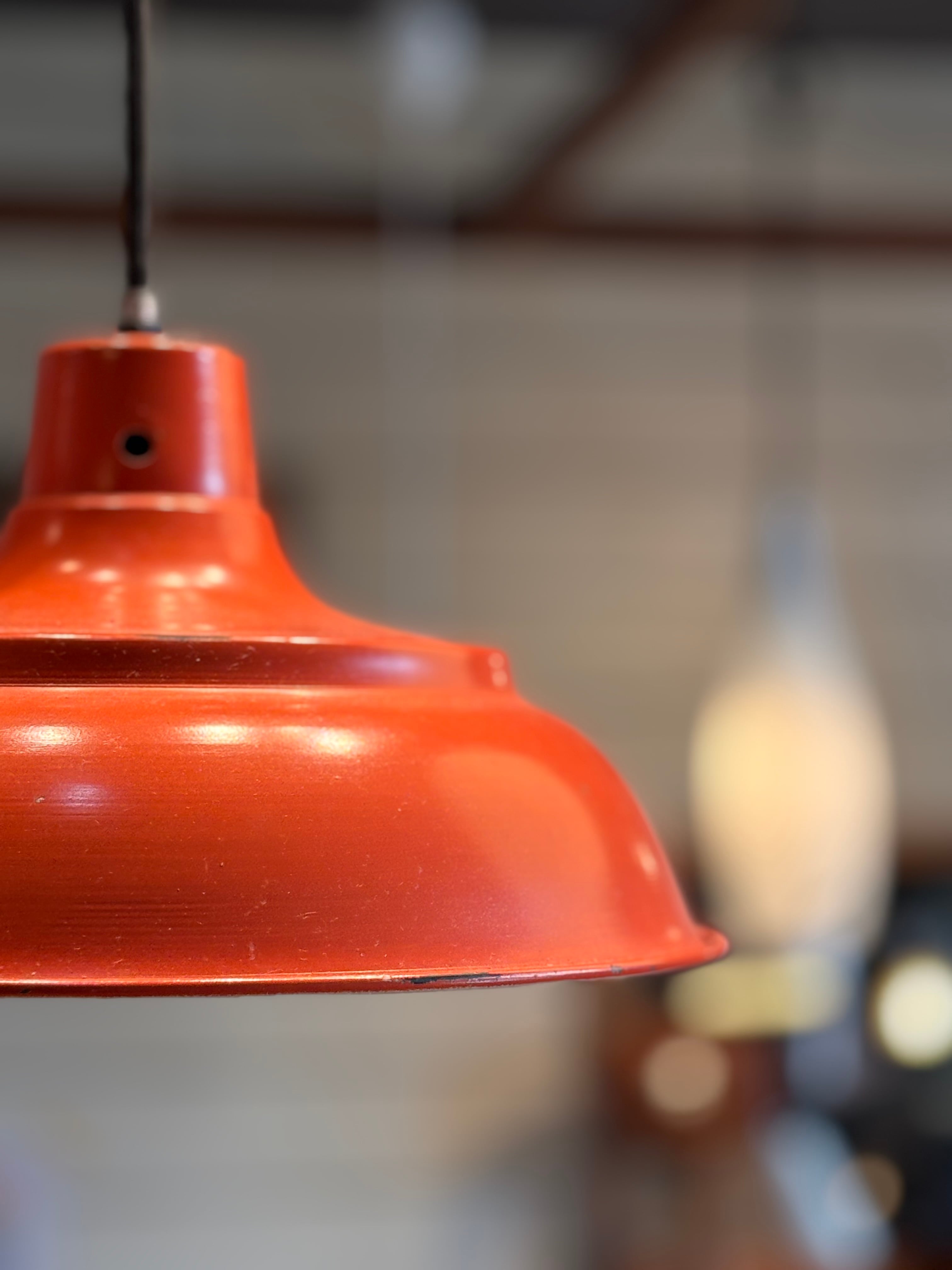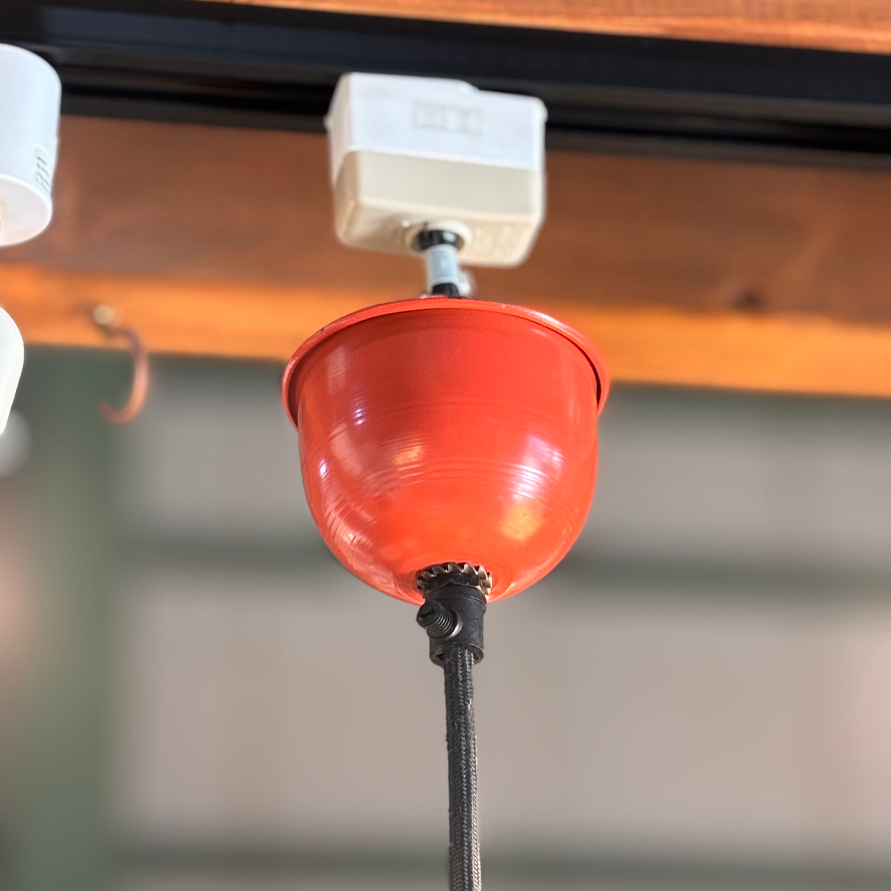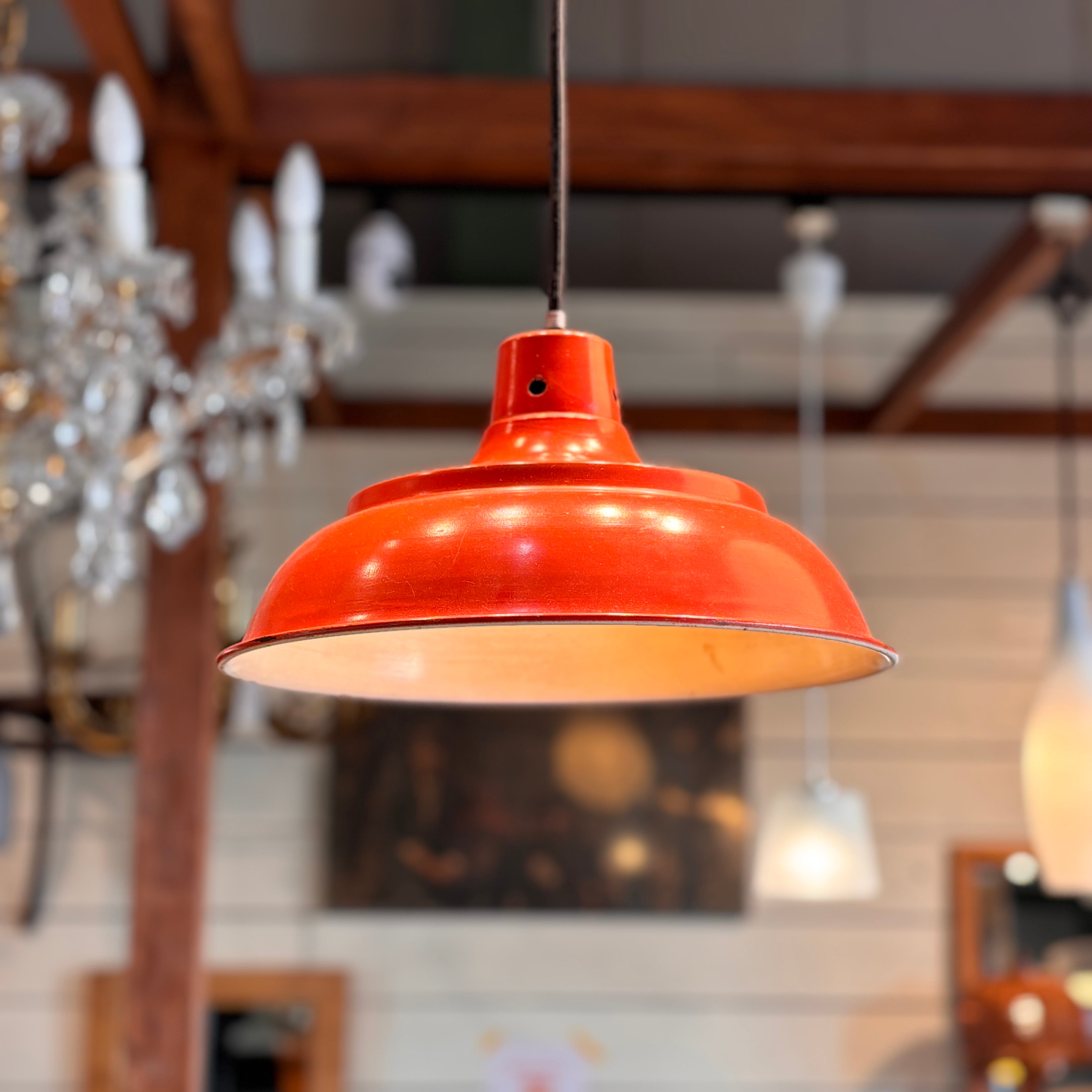 鮮やかなオレンジ色がアクセントになる、ホーロー製ペンダントライト。