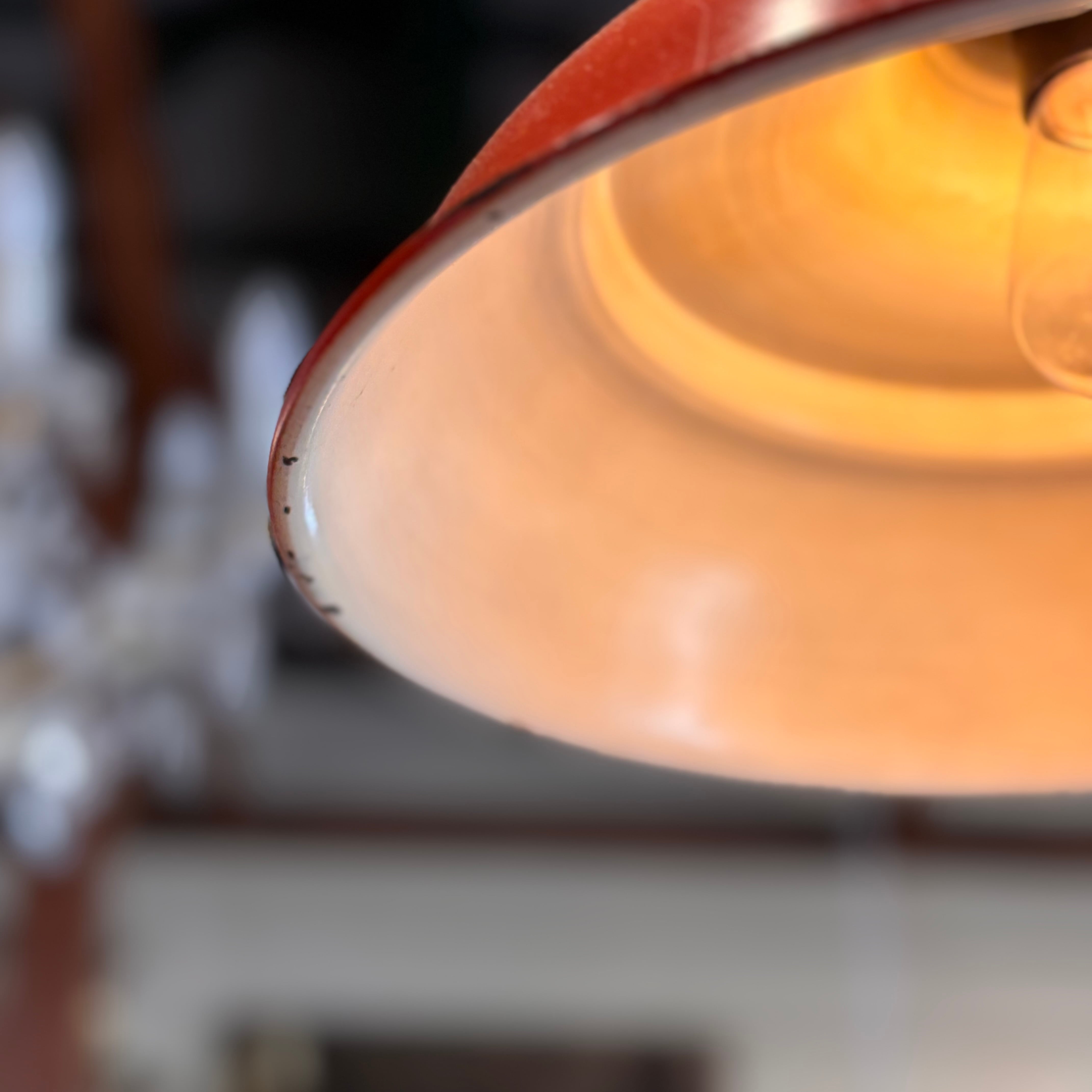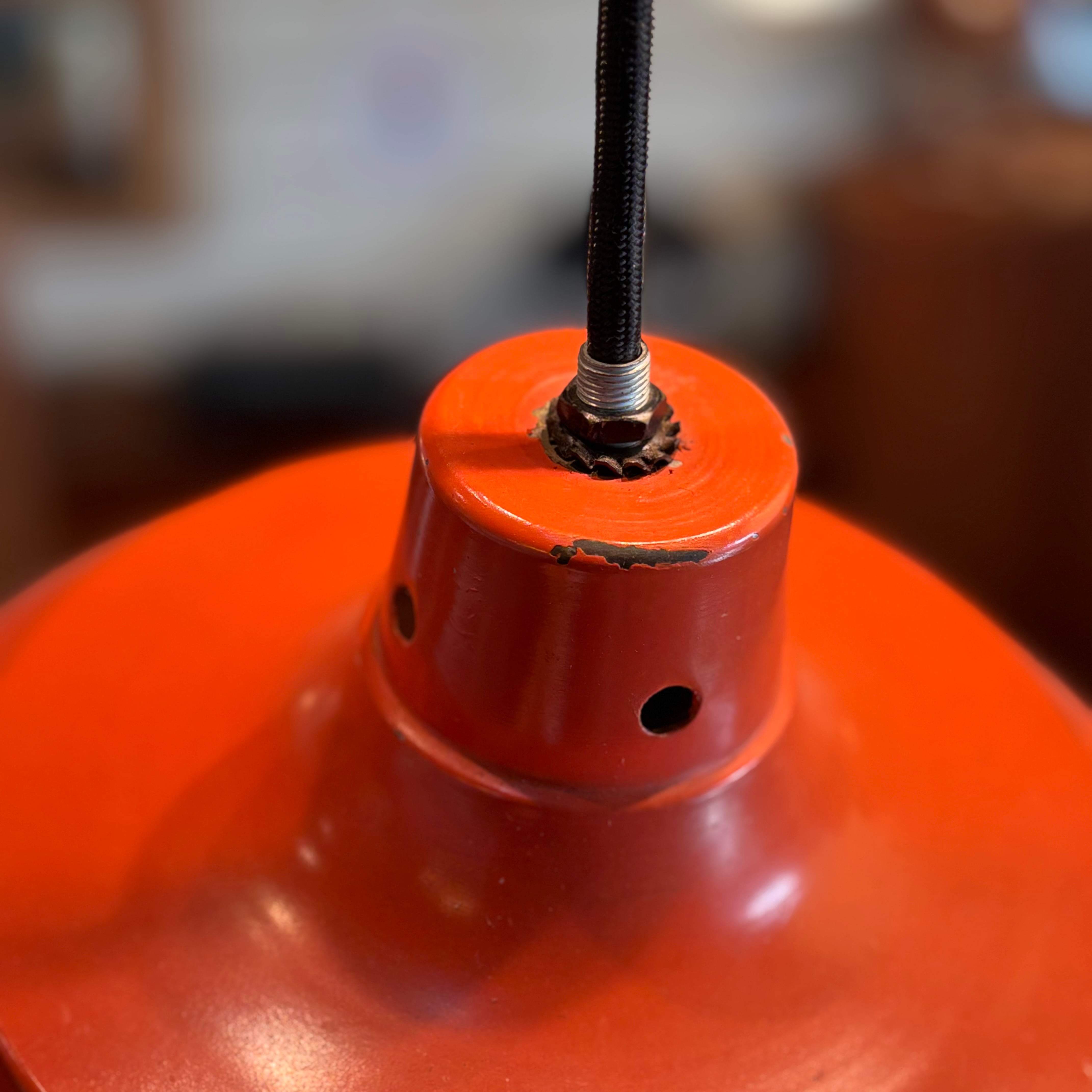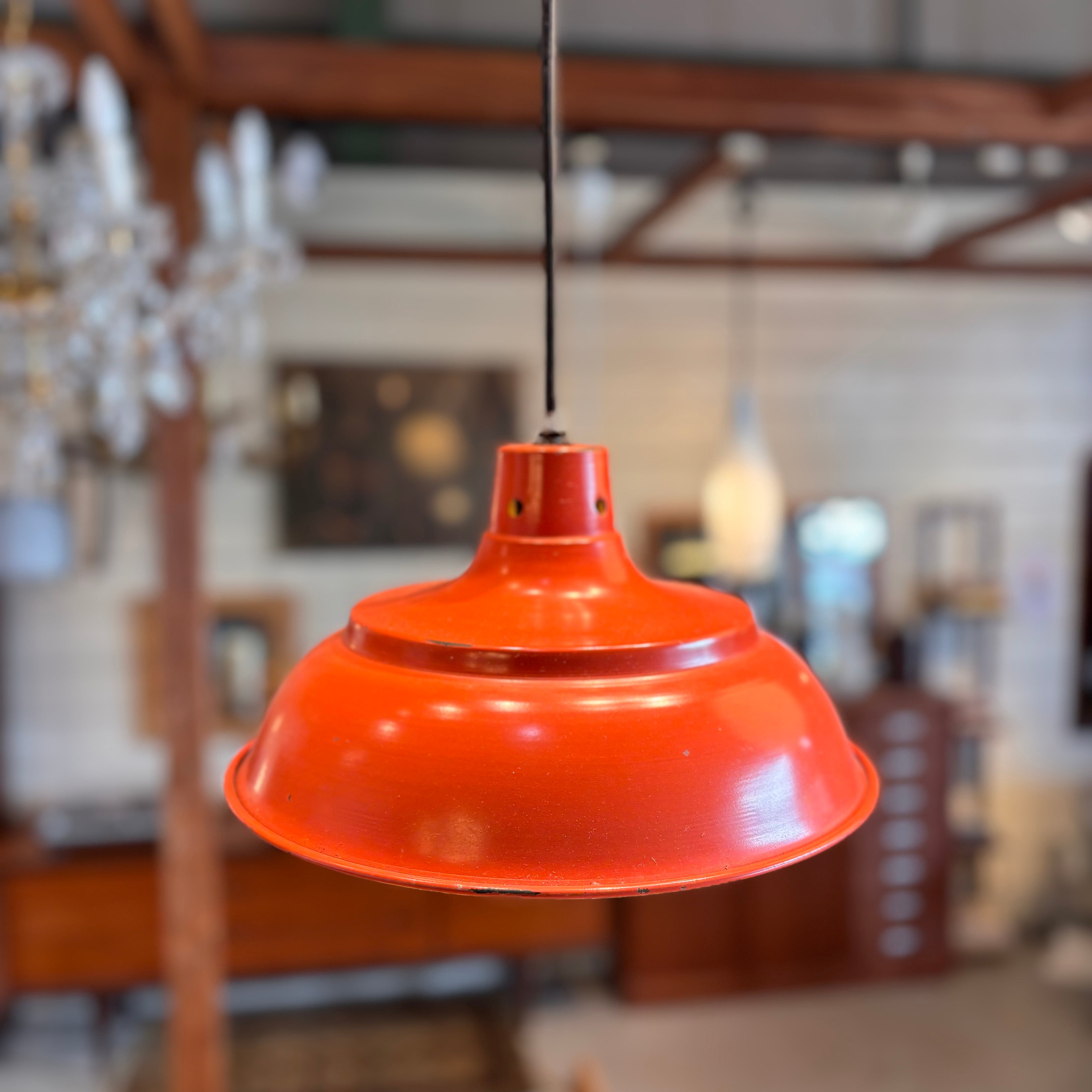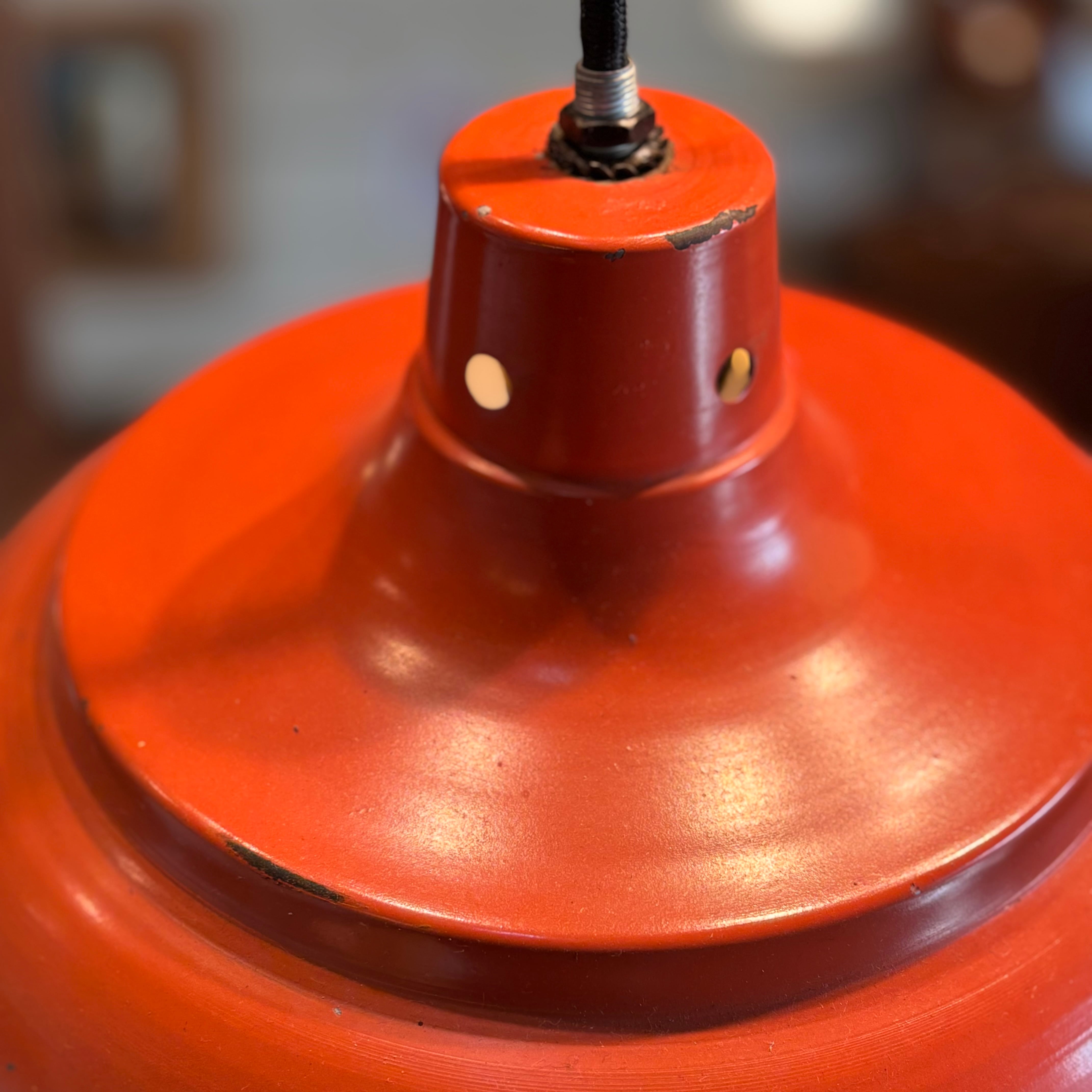 鮮やかなオレンジ色がアクセントになる、ホーロー製ペンダントライト。