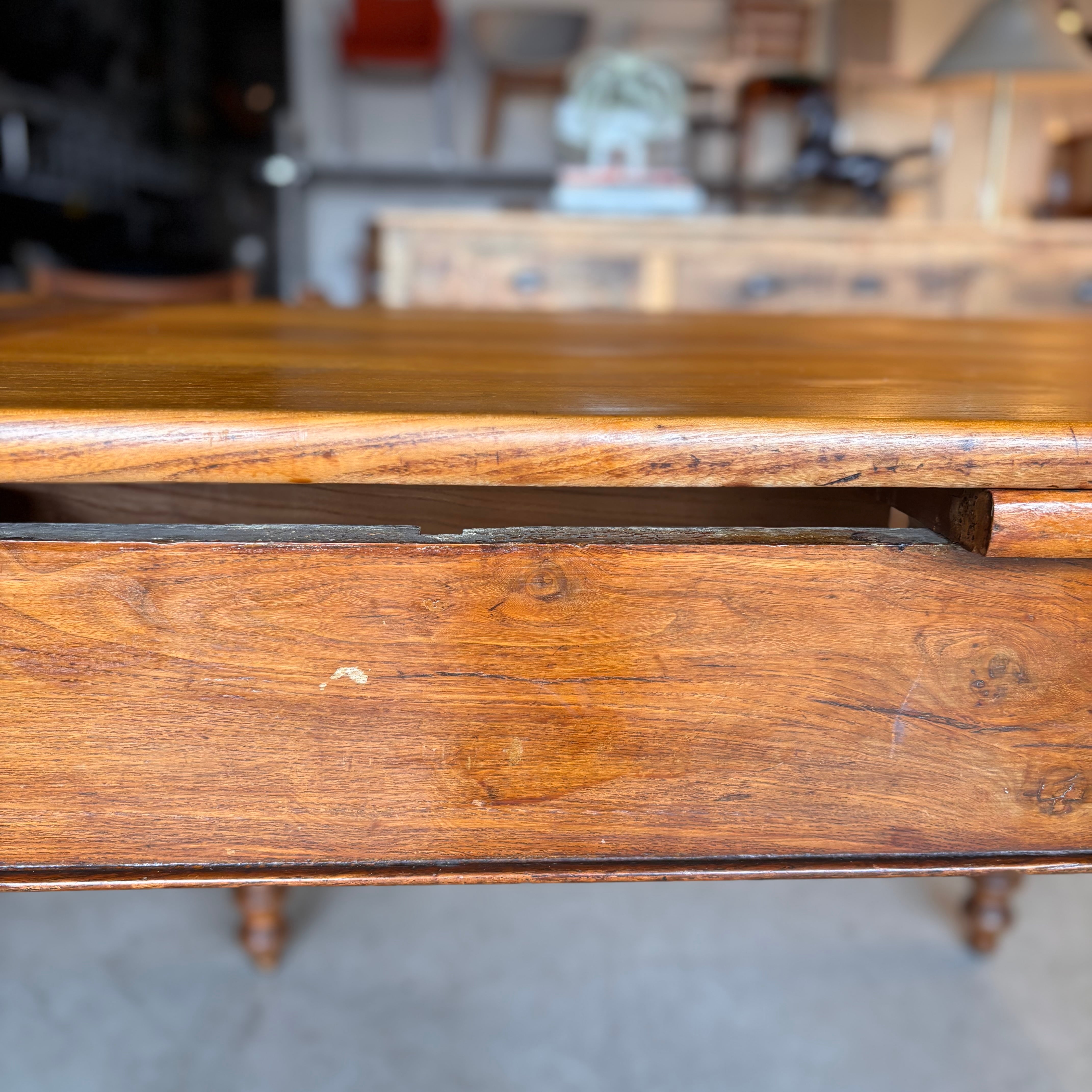 温かみのある木肌と、堂々とした佇まいが魅力のUSAヴィンテージ・ドローリーフテーブル。