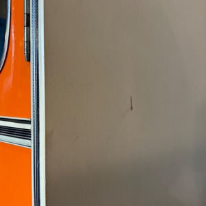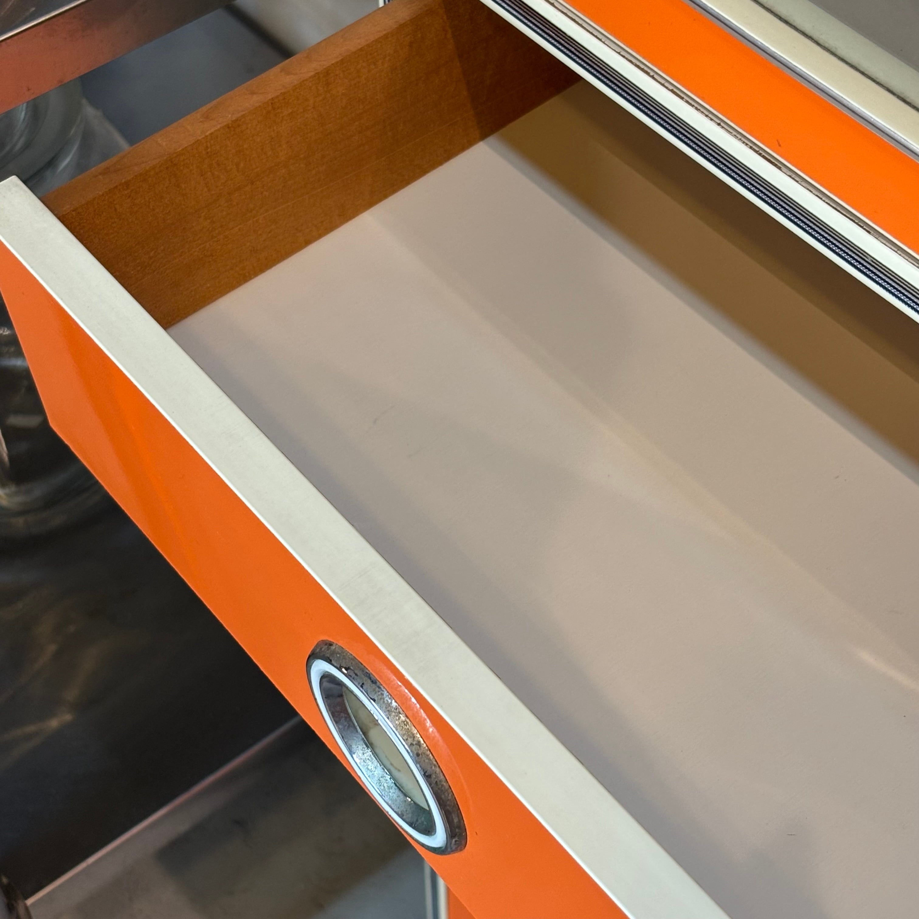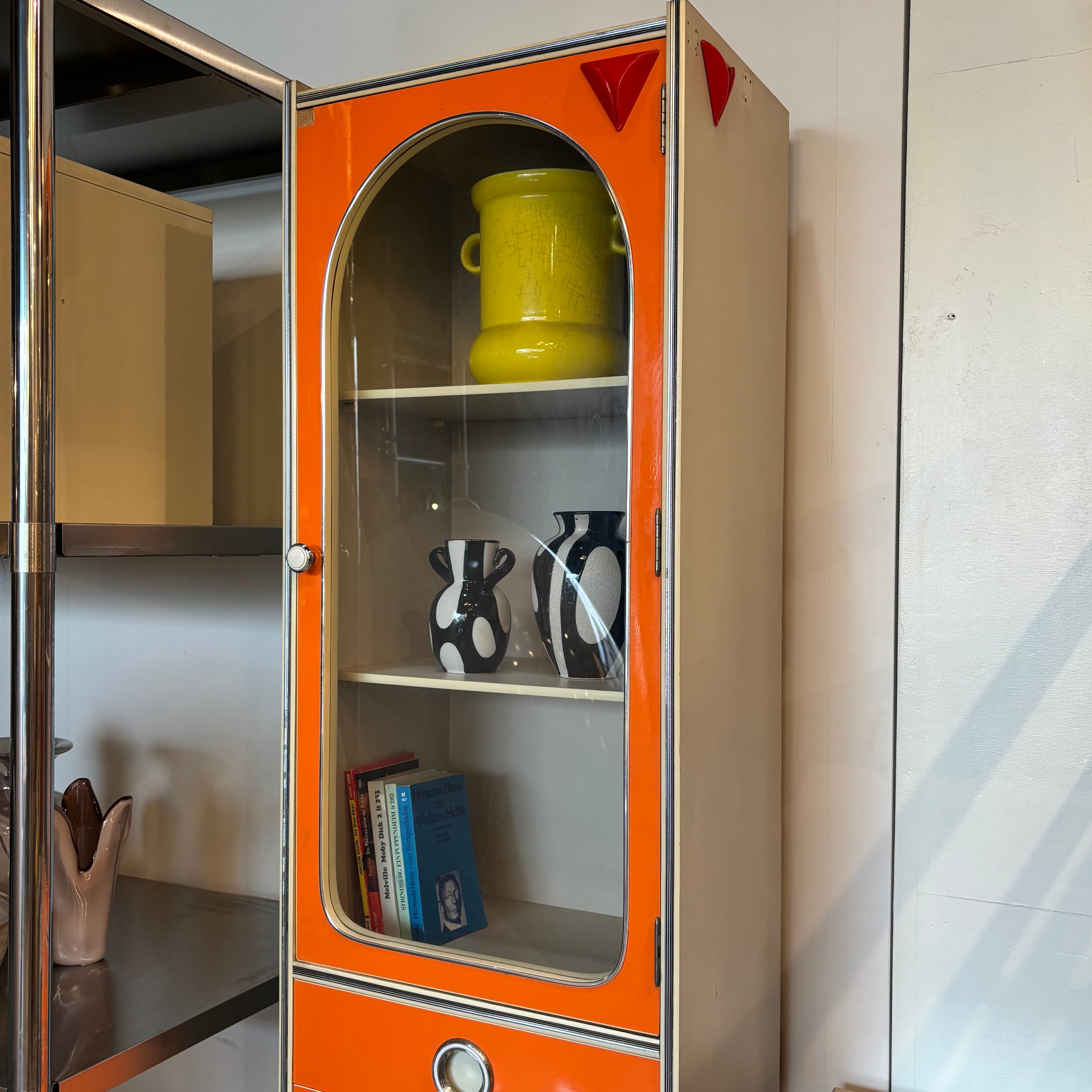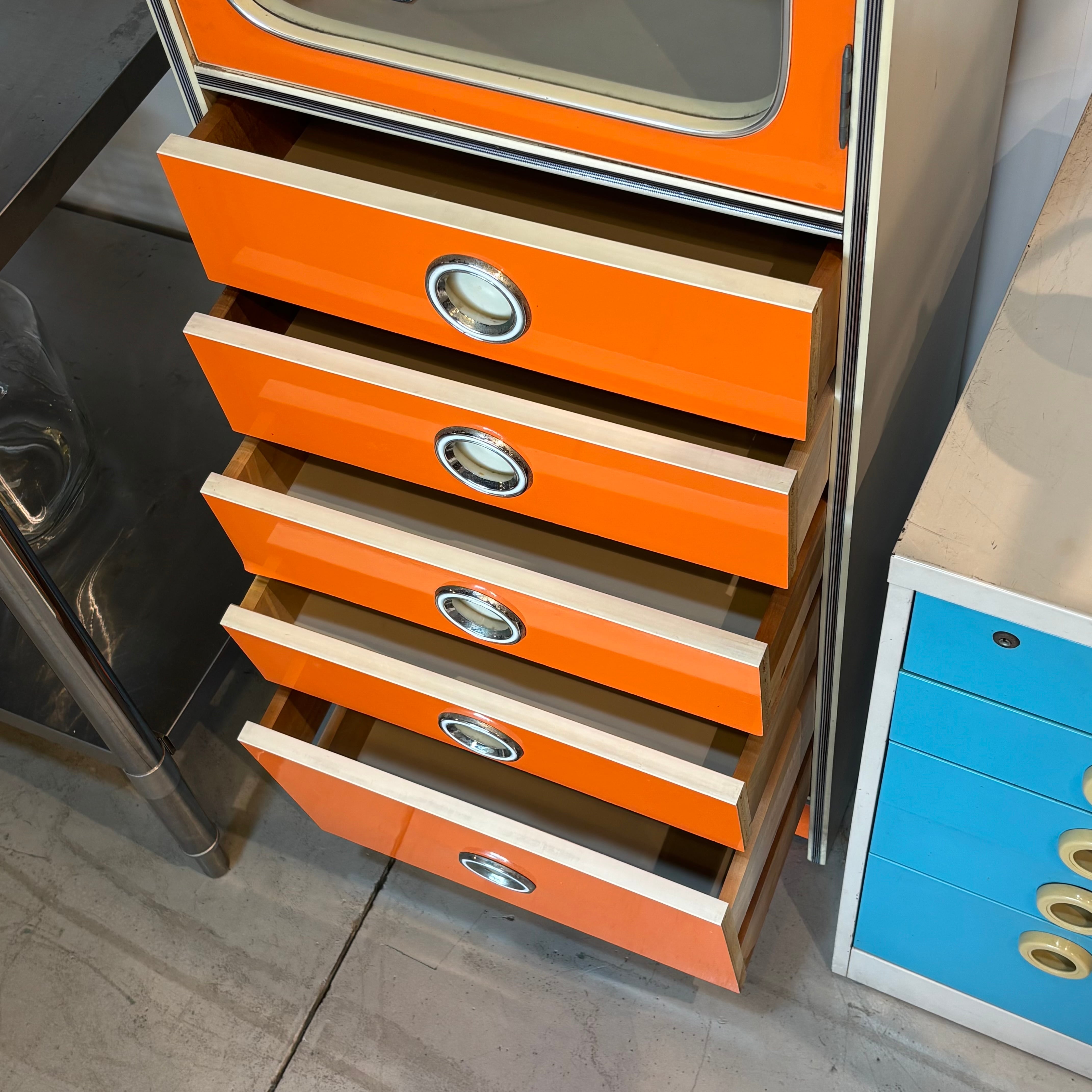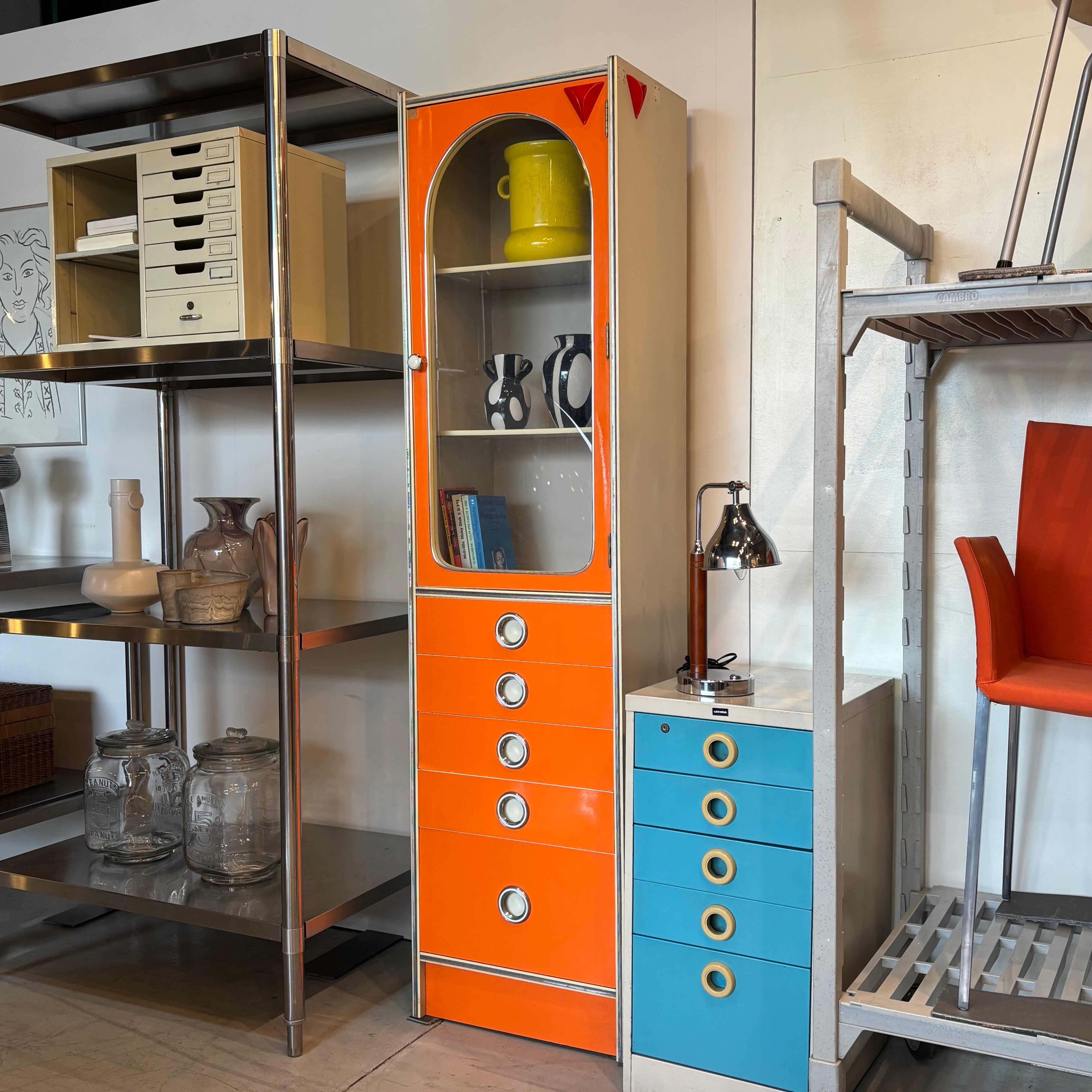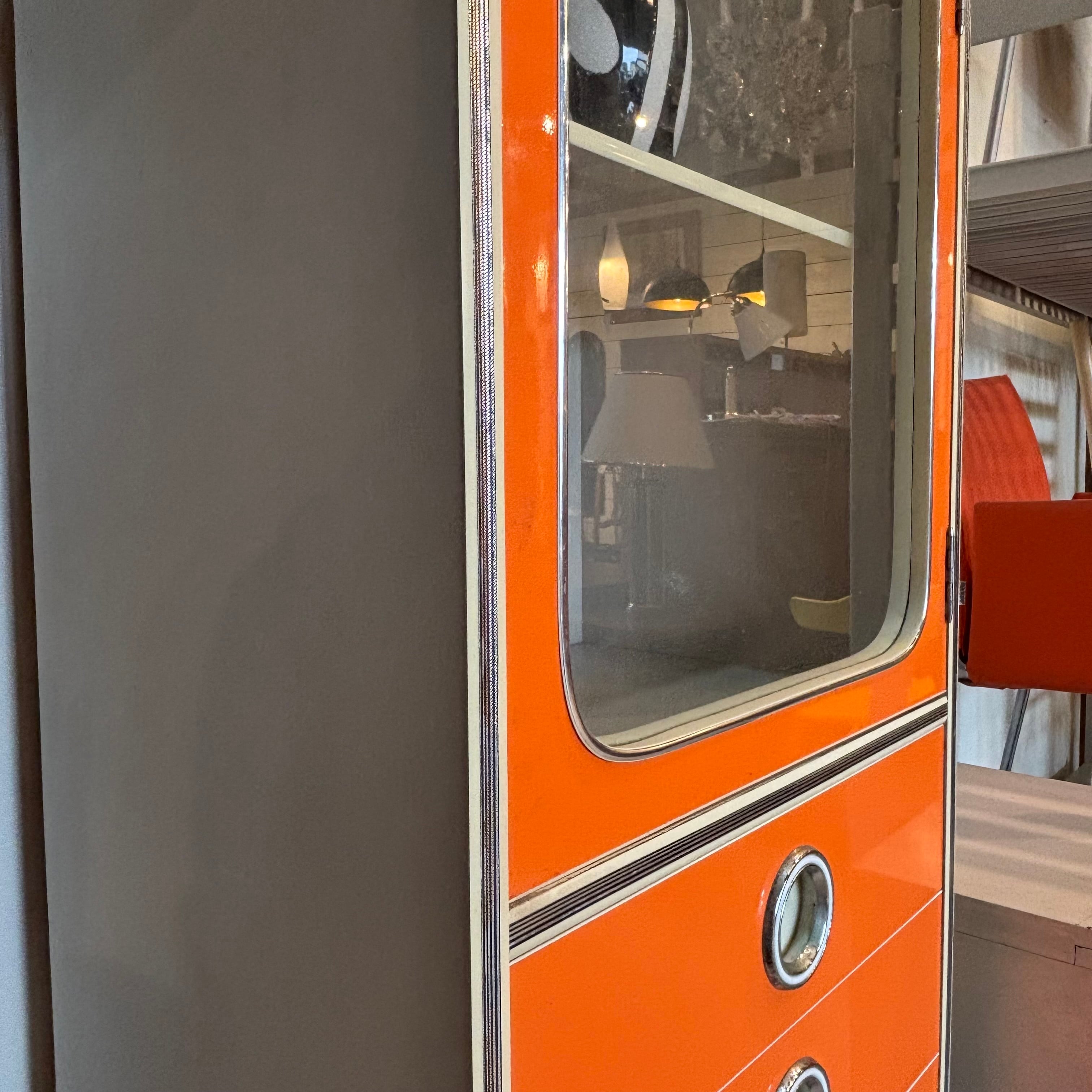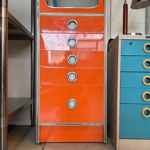 鮮やかなオレンジが目を引く80’sのスリムキャビネット。