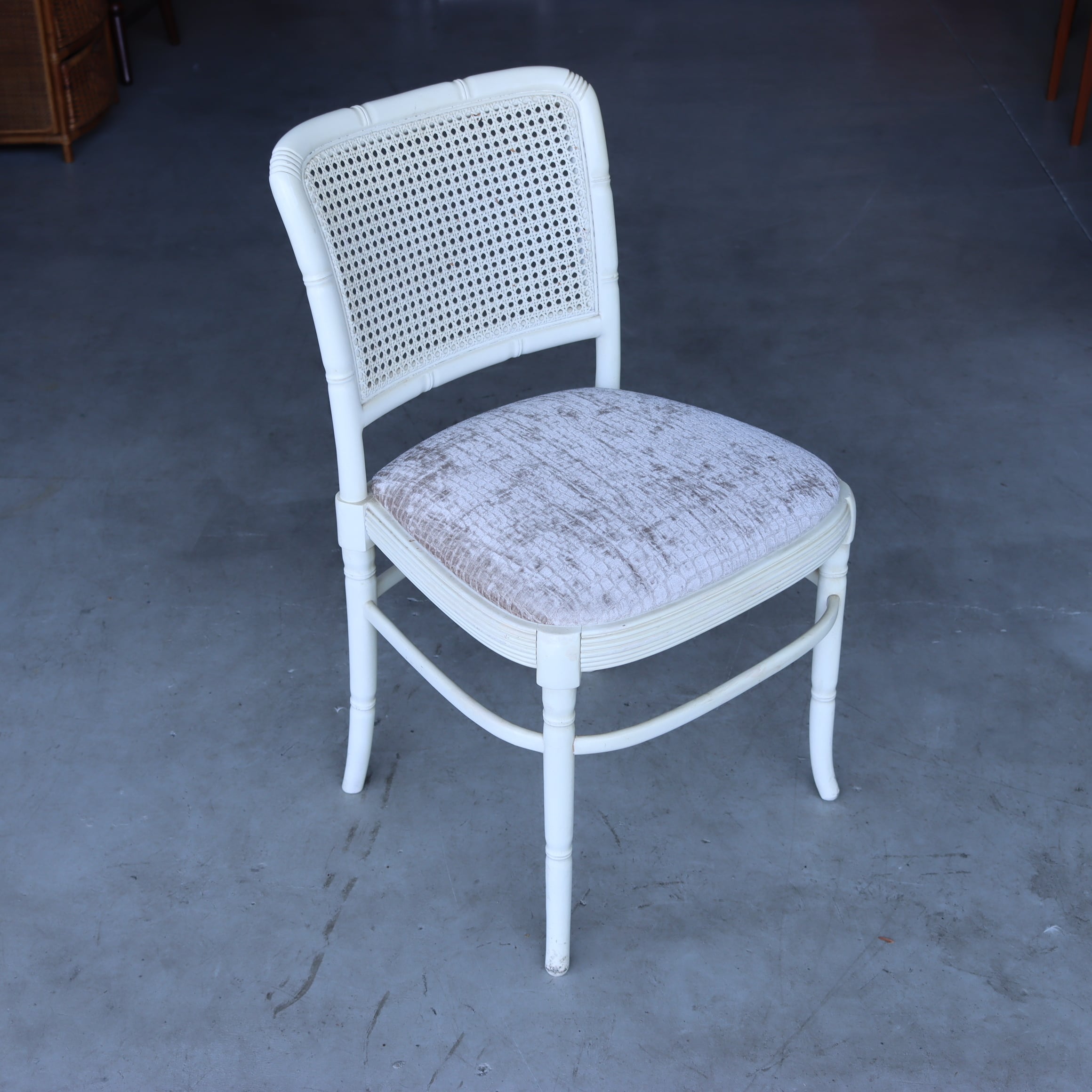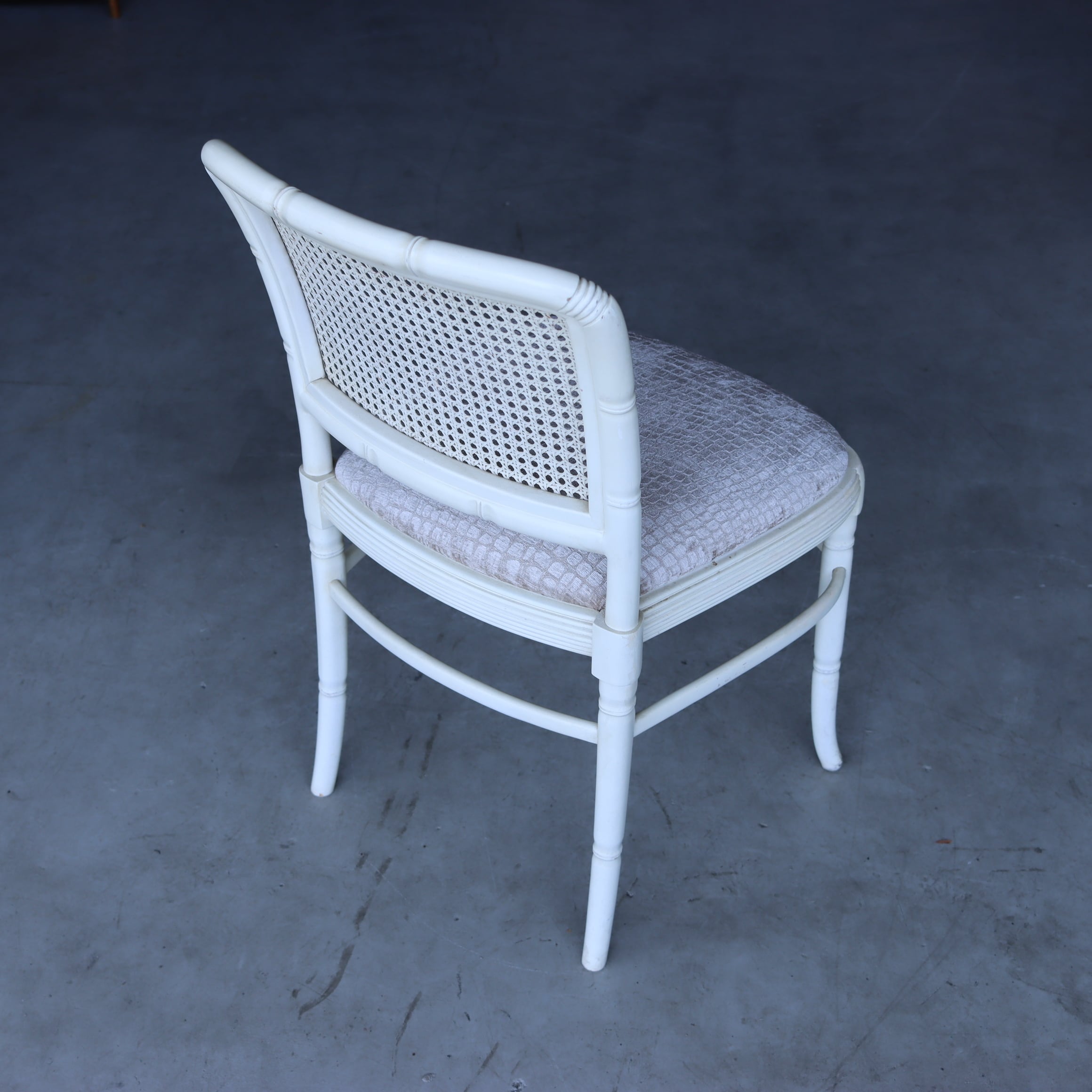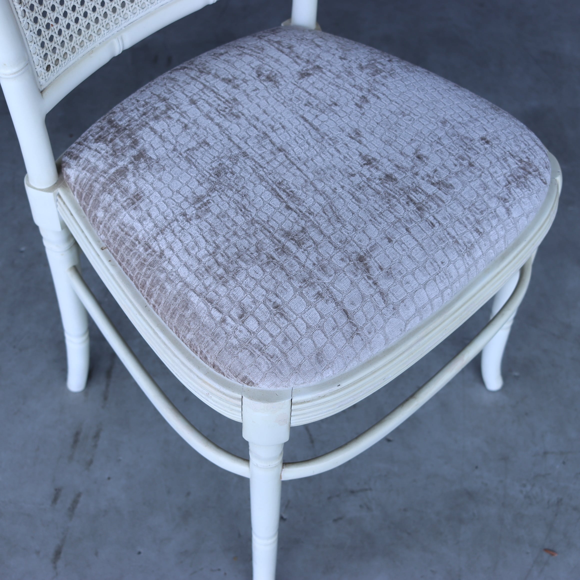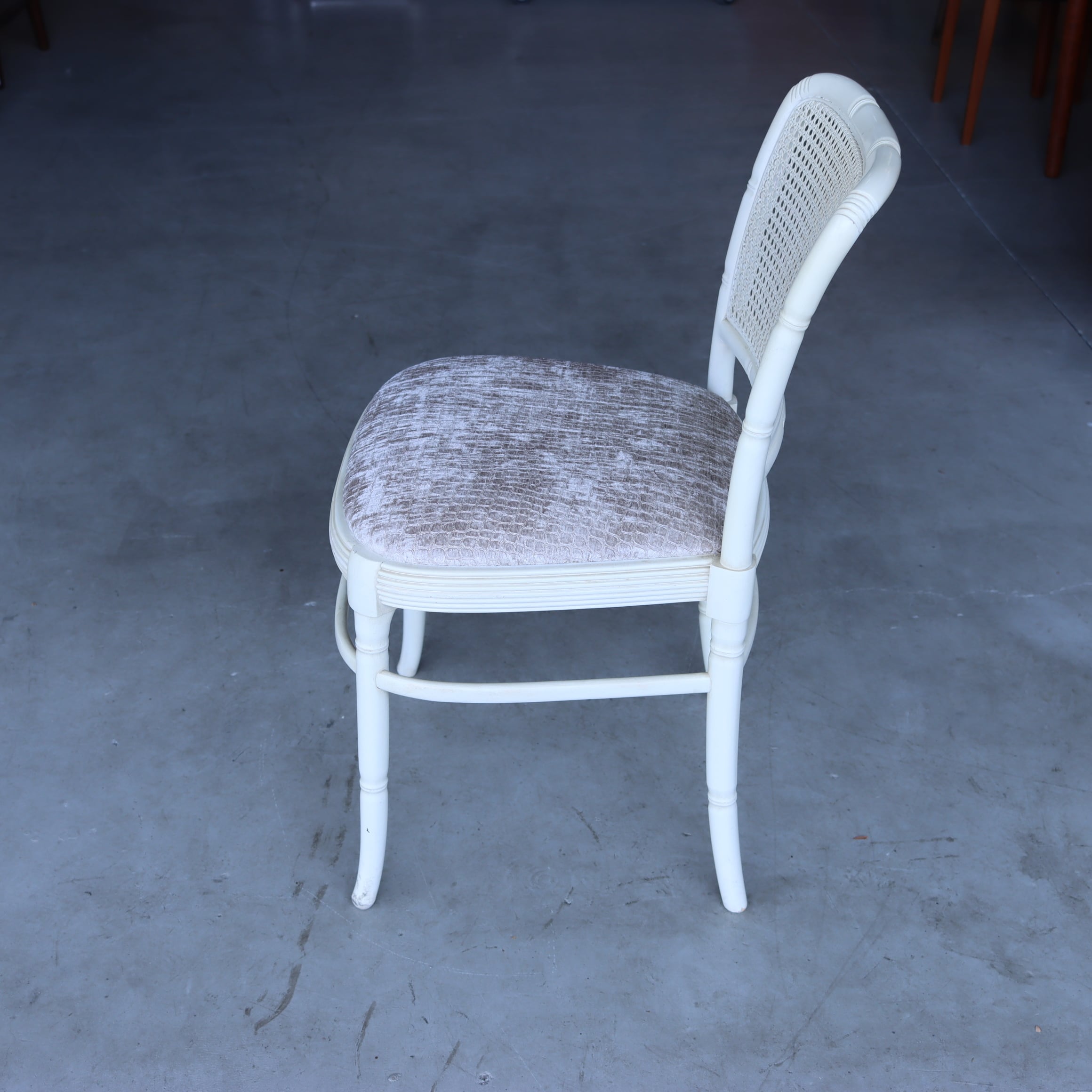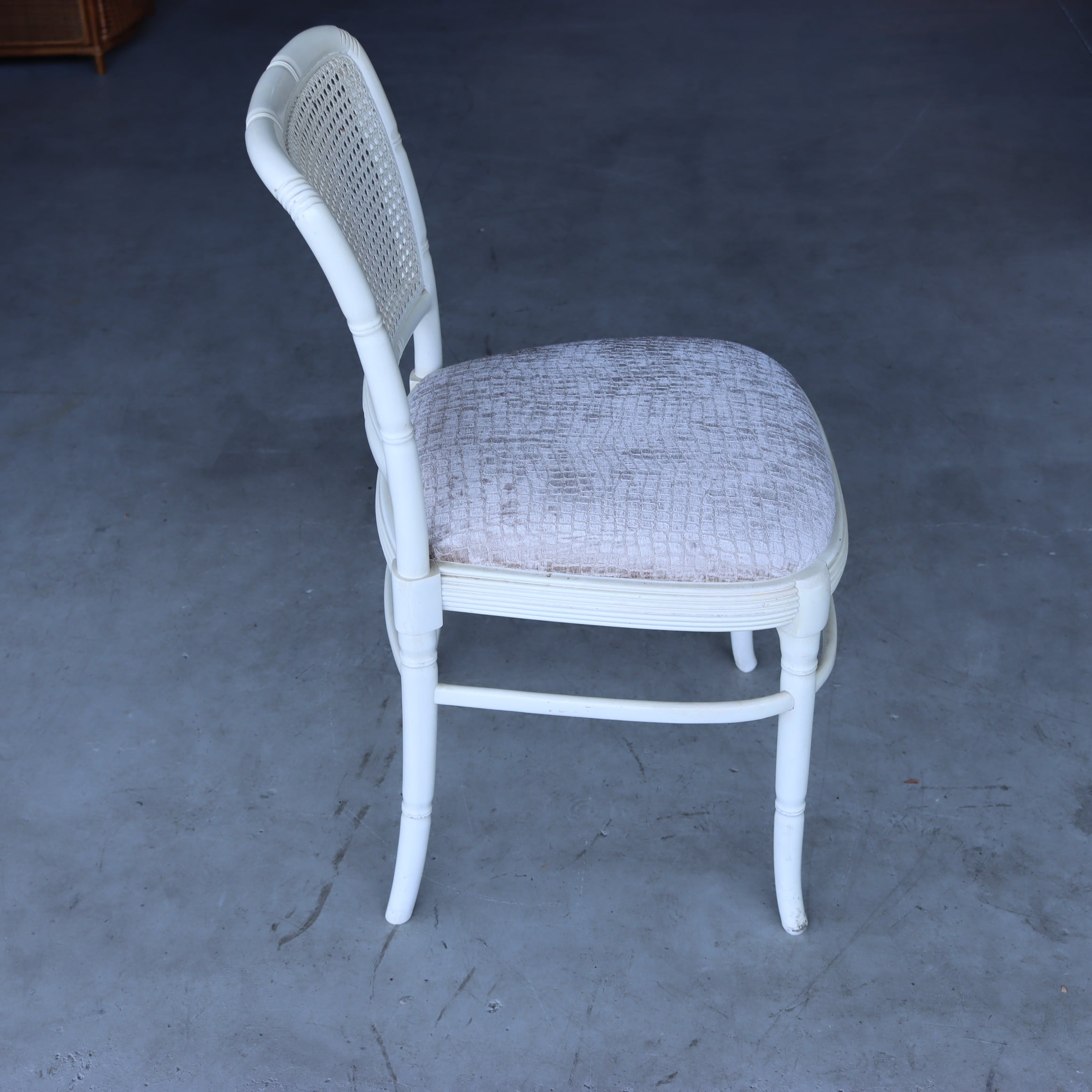 光沢感のあるクロコ柄の座面にラタンの背もたれ、全体的にとても上品なのに、新しさもあってモダンな家具にも合いそうです。